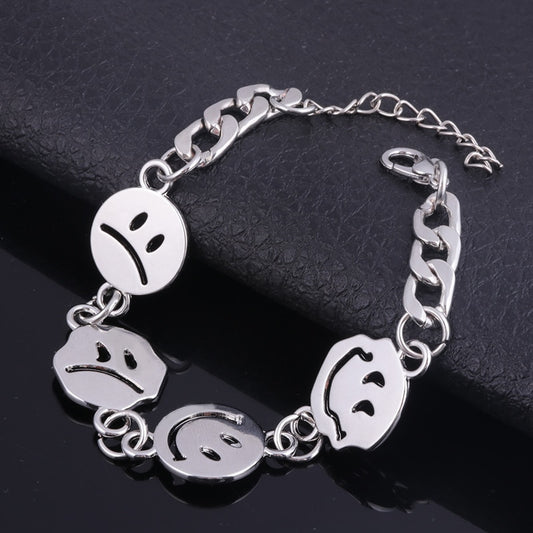 Fashion Happy Smiley Crying Face Charm Bracelet Hip Hop Thick Chain Bangle Bracelets for Women Men Jewelry Accessories
